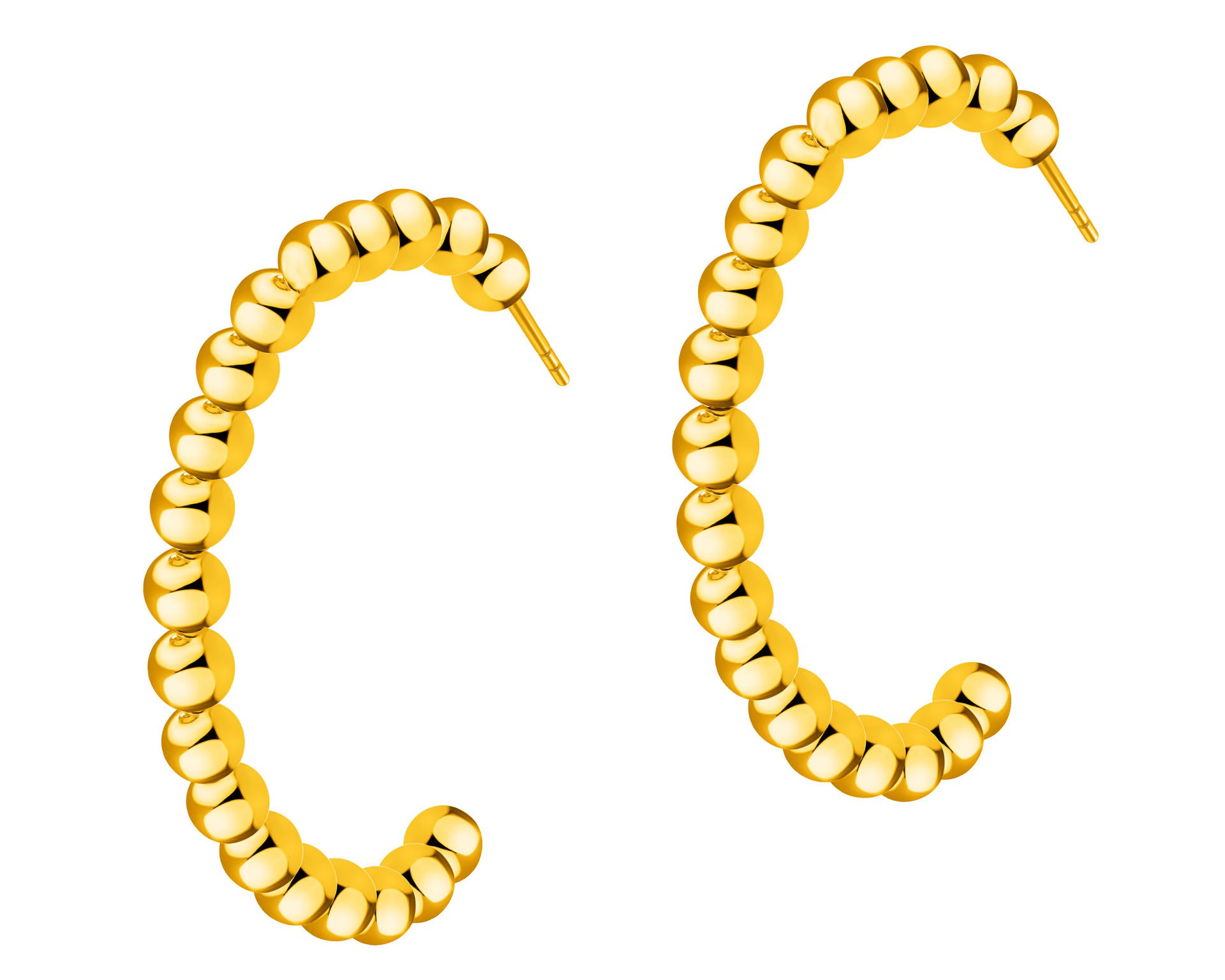 Pozłacane kolczyki wykonane z mosiądzu w formie kulek, długość 50 mm. Stylowa i lekka biżuteria, idealna jako akcent codzienny.